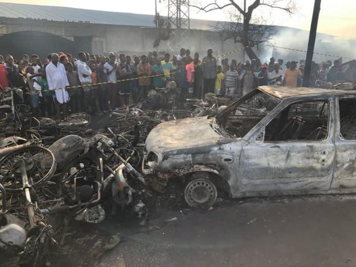 El sábado por la mañana el caparazón del camión cisterna parecía seguir goteando combustible cuando la policía y los soldados intentaban expulsar a una multitud de curiosos reunidos en la calle, según un reportero de Reuters.