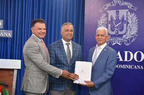 La entrega fue realizada durante una visita al presidente del Senado, Ricardo De Los Santos, realizada por el ministro de la Presidencia, Joel Santos Echavarría, en compañía de Andres Vander Horst, vicepresidente ejecutivo de Fiduciaria Reservas.