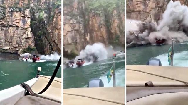 BRASIL.- El vídeo apenas dura unos segundos, pero refleja el dramatismo del momento: gritos de impotencia, el crujir de la montaña y el momento en que una gigantesca pared de rocas cae sobre varias lanchas turísticas sobre un lago paradisíaco. Dos de ellas, fueron golpeadas de lleno. A bordo viajaban decenas de personas.
