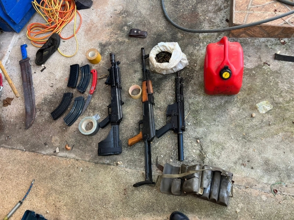 Los agentes y varios fiscales allanaron una villa, próximo al hotel el Quemaito, en la calle principal sin número, donde incautaron tres fusiles entre ellos, un AK-47, calibre 63, un M-16 calibre 7.62 y un M-92, marca Zastava Serbia, calibre 762x39mm.