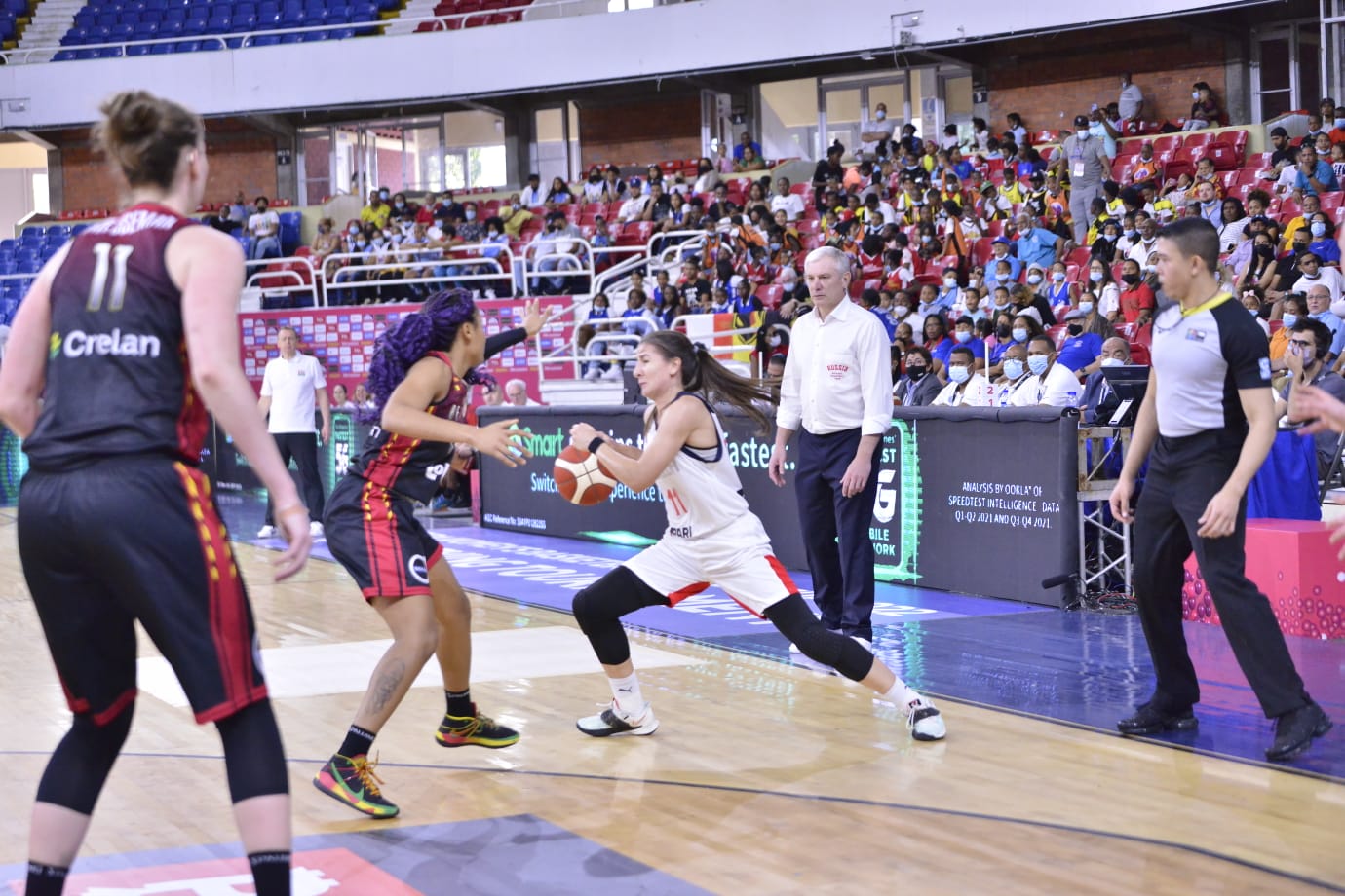 Hasta el medio tiempo, las mejores anotadoras por las belgas fueron Emma Meesseman con 14 puntos, Julie Allemand 11 tantos y cuatro asistencias, y Kyara Linskens 10 encestes y cinco rebotes.