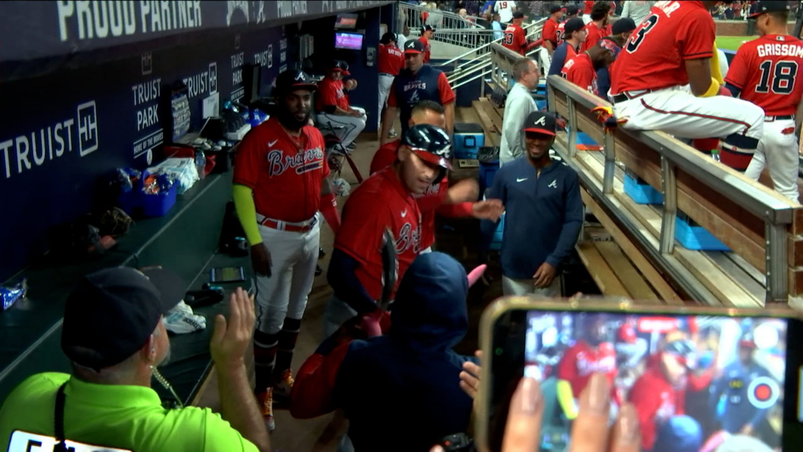 Swanson puso la pizarra 3-1 con su 23er jonrón contra deGrom que había retirado a siete en fila. La pelota voló 134,4 metros (441 pies) hasta las gradas del jardín izquierdo y los fanáticos estaban extasiados.