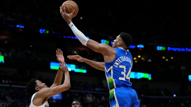 El griego Giannis Antetokounmpo selló su decimoséptimo doble doble del año, con 42 puntos y diez rebotes, Brook López aportó 30 puntos y los Bucks prolongaron la caída de los Pelicans para reforzar su primera posición en el Este.