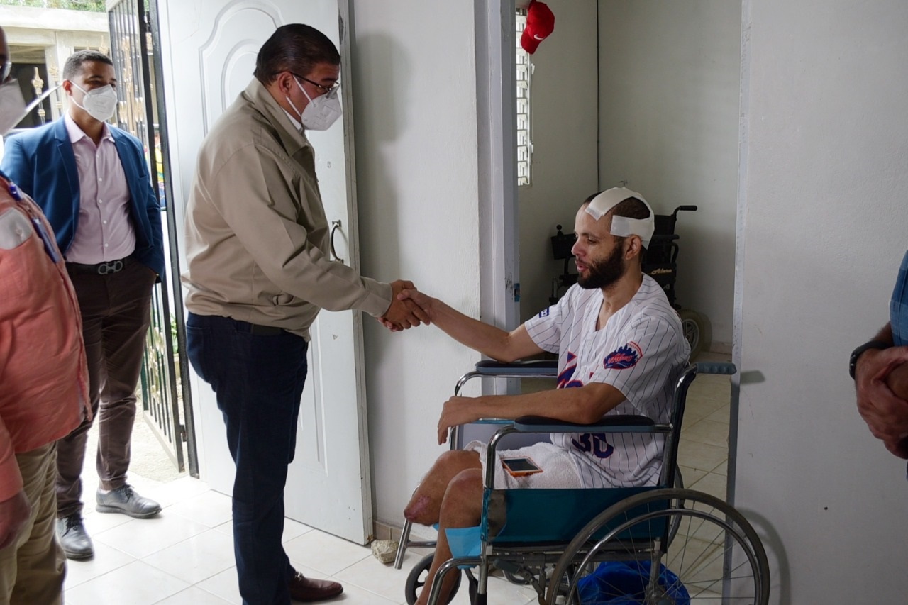 San Francisco de Macorís, RD.- El ministro de Deportes, Francisco Camacho, hizo entrega de un aporte económico que le envió la primera dama de la República, Raquel Arbaje, al joven deportista Juan Antonio Mata Sánchez, quien sufrió la amputación de una pierna la rotura de la otra tras ser atropellado en 2019 en esta ciudad, la principal de la provincia Duarte.
