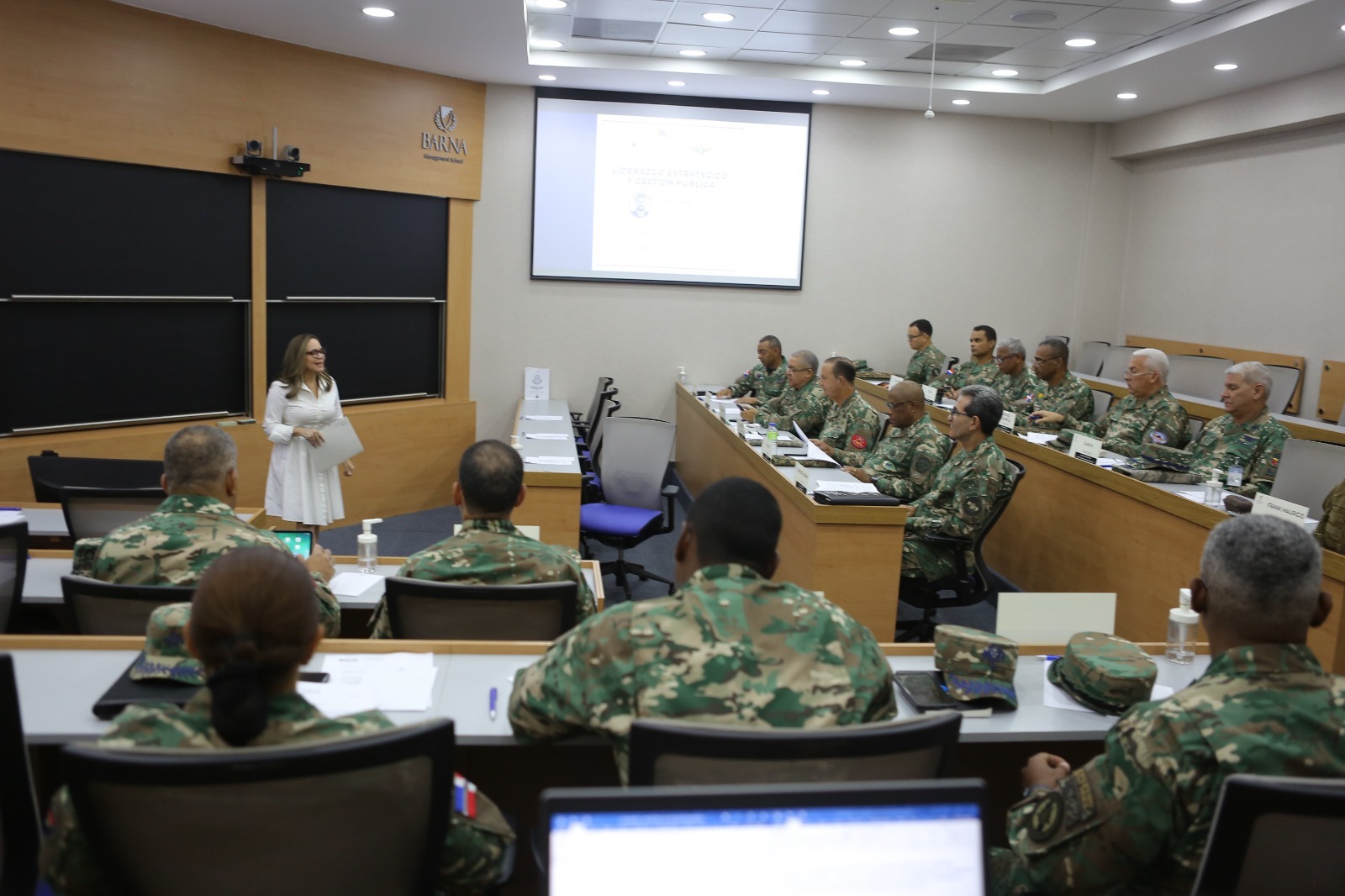 SANTO DOMINGO, RD.- Con el objetivo de reforzar las capacidades del alto mando militar de las Fuerzas Armadas en temas de gestión pública y liderazgo para la toma de decisiones estratégicas, oficiales del estado mayor general y conjunto, directores de cuerpos especializados y dependencias del Ministerio de Defensa (MIDE), fueron capacitados en un taller en la BARNA Management School.