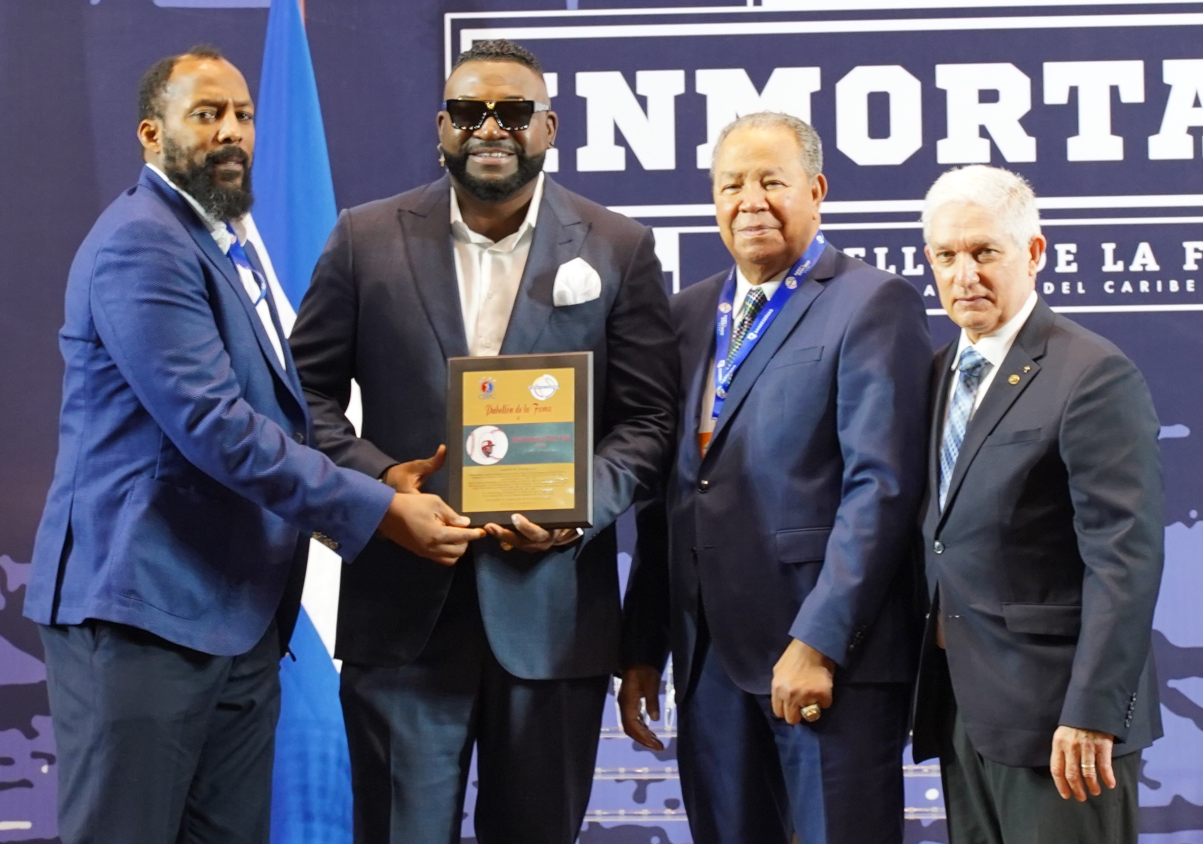 El comisionado de Beisbol entregó las placas de David Ortiz, y se hizo acompañar de los inmortales de Cooperstown, Juan Marichal y Vladimir Guerrero, así como a Tony Batista.