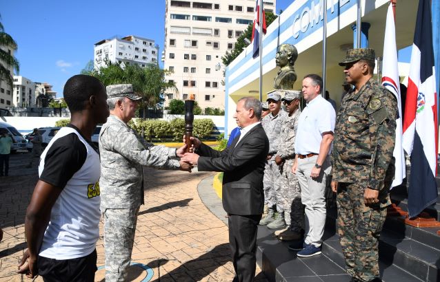 La antorcha de la LII versión de los Juegos Deportivos Militares y Policiales, cuya inauguración oficial será este miércoles a las 5:00 de la tarde en el Estadio de softbol del Ministerio de Defensa.
