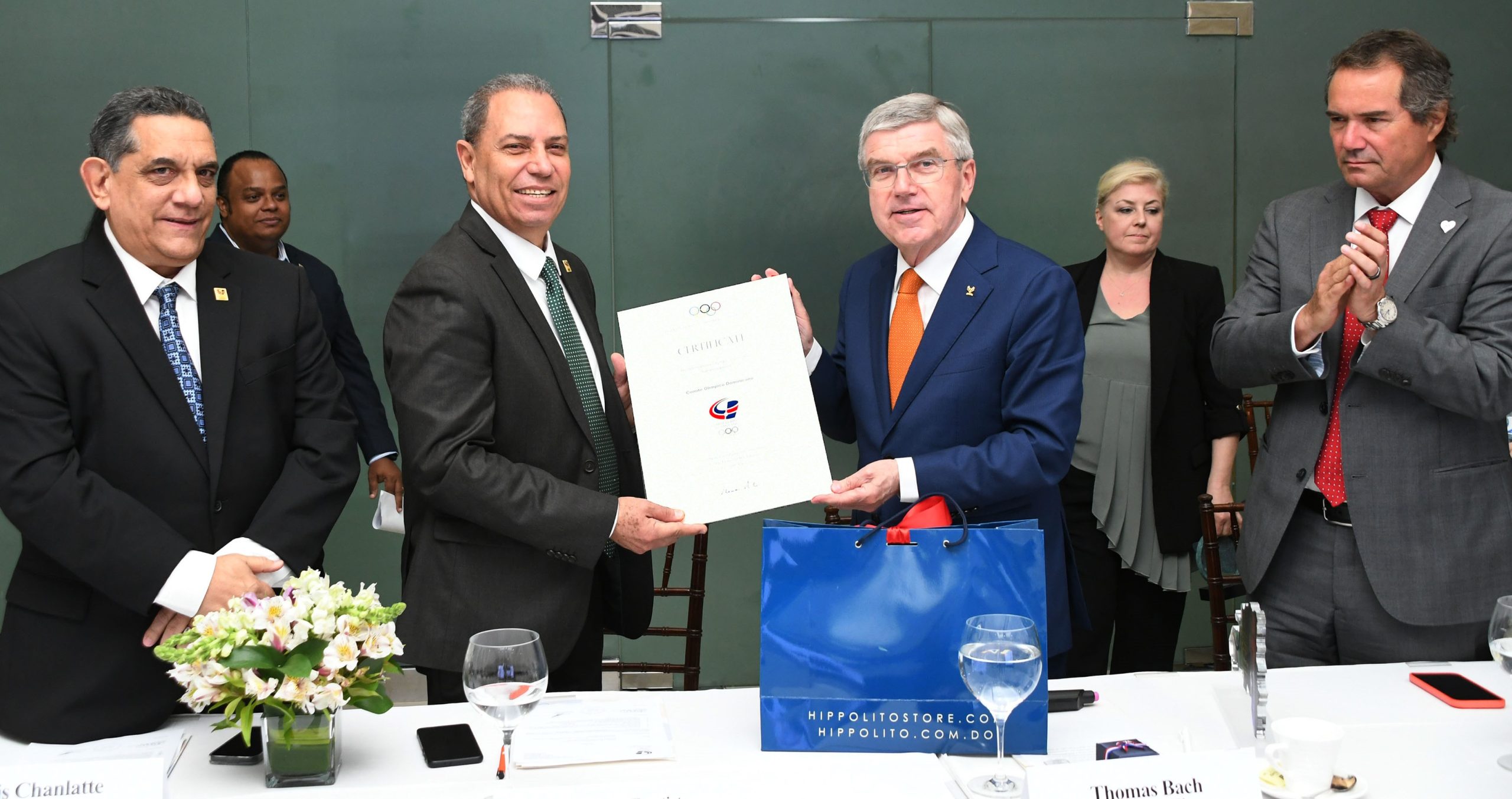 “Aunque ustedes fueron aceptados en la quincuagésima asamblea del COI, hoy estamos entregando el certificado que le acredita como miembro”, dijo Bach al hacer entrega del documento.