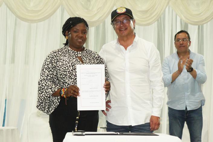 El presidente colombiano, Gustavo Petro, que llegó al acto con horas de retraso, firmó la ley que le da vida a la nueva entidad y reafirmó que la vicepresidenta será «la primera ministra de la Igualdad».