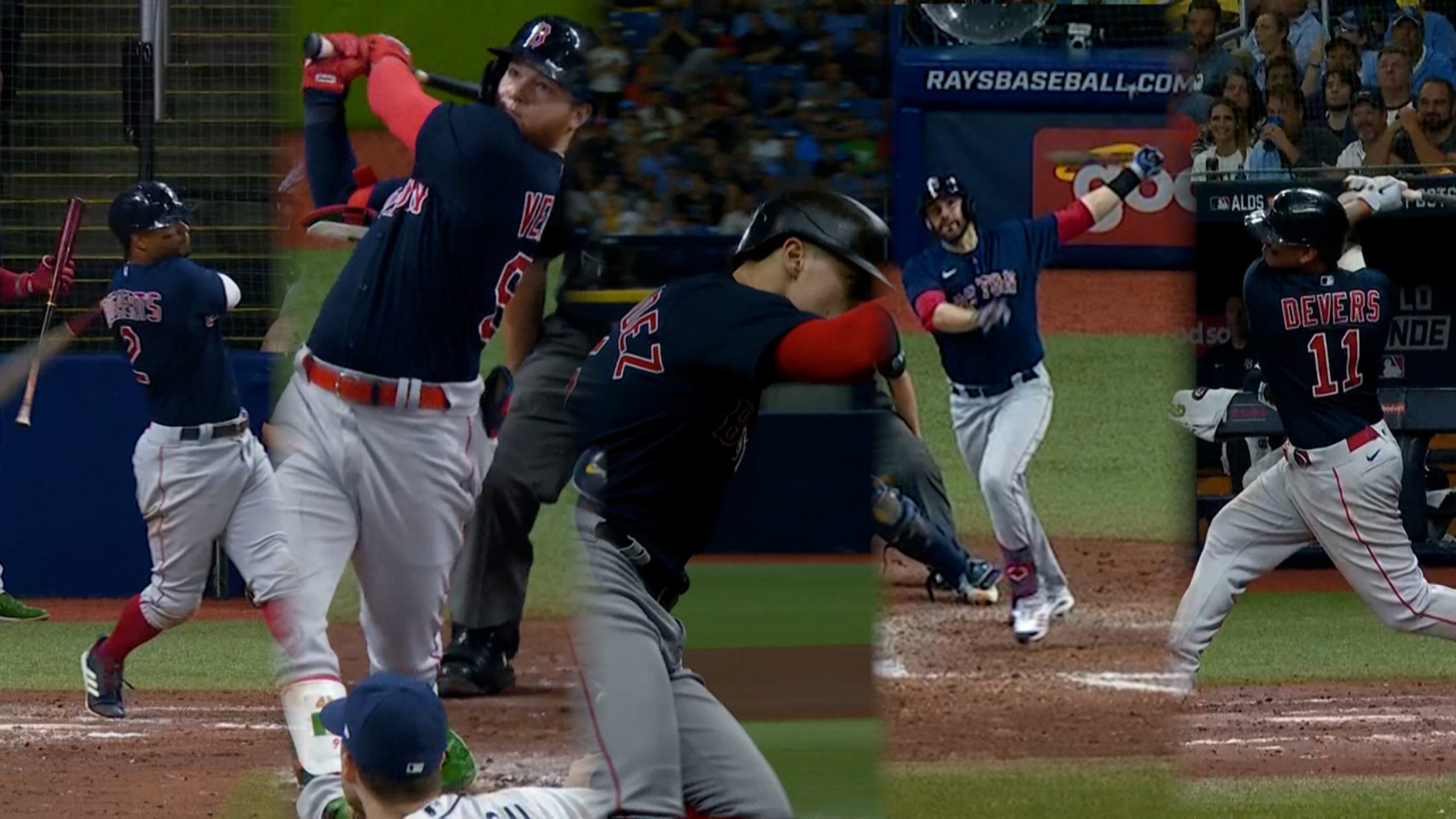 El jueves en el Juego 1 de su Serie Divisional contra los Rays, los Patirrojos conectaron múltiples batazos de 100 millas por hora o más, pero cayeron víctimas del buen posicionamiento de Tampa Bay a la defensa y fueron blanqueados. Nada de eso sucedería el viernes en el Juego 2, en el que Boston tuvo un histórico despliegue de poder en su triunfo por 14-6 sobre Tampa Bay.