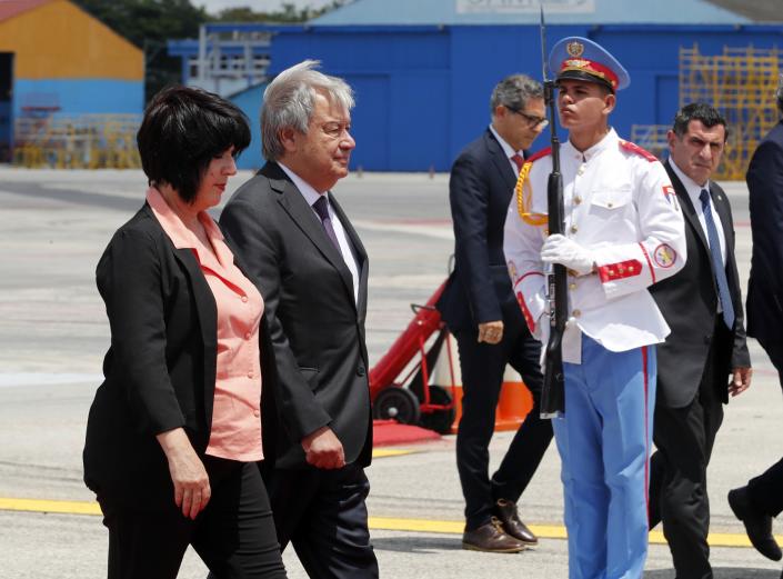 Guterres fue recibido en el Aeropuerto Internacional José Martí de La Habana por la ministra cubana de Trabajo y Seguridad Social, Marta Elena Feitó, y otros funcionarios cubanos.