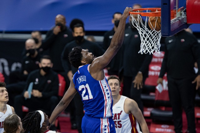 Embiid sentó cátedra bajo los aros y también capturó 16 rebotes que lo dejaron con un doble-doble decisivo en el triunfo de los Filadelfia Sixers por 137-134, en la prórroga, ante el diezmado equipo del Miami Heat, que jugó sin sus estrellas, el alero Jimmy Butler, el pívot Bam Adebayo y el base esloveno Goran Dragic, afectados por los protocolos de salud y seguridad de la covid-19.