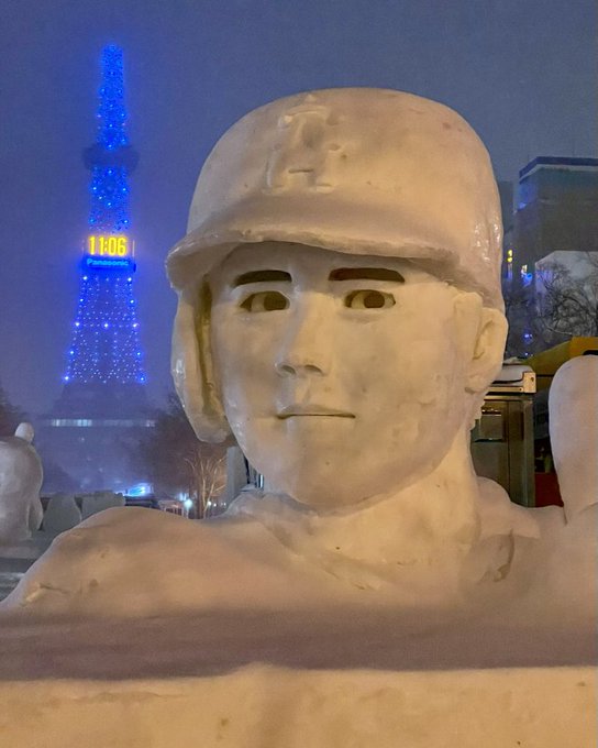 Créanlo o no, ésta no es la primera vez que se ha exhibido una escultura de nieve en el Festival de Nieve de Sapporo. En el 2013, Ohtani ya era un fenómeno tan grande que debutó en el festival el mismo año en que debutó en la NPB.