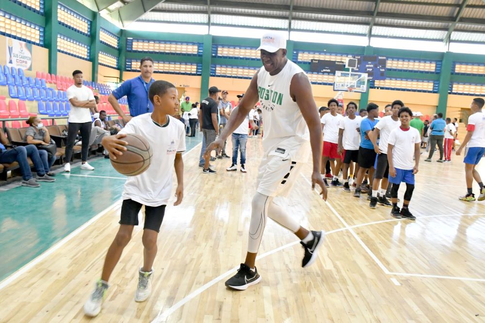 LA ROMANA, RD.- Los inmortales del baloncesto, Alfredo William (Tito) Horford, José (El Grillo) Vargas y Eduardo Gómez impartieron entrenamiento a niños y adolescentes, a los que exhortaron a no apartarse de los estudios, practicar deportes y mantener la voluntad de progresar, herramientas que abren las puertas al éxito.