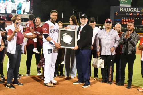 Dentro de los reconocimientos, también recibió un cuadro que retrata la actuación histórica que tuvo, cuando el miércoles 26 de noviembre del 2008 en el estadio Quisqueya, remolcó 10 carreras en un triunfo de su equipo 21-13 sobre Los Tigres del Licey.