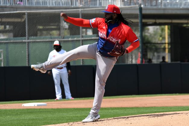 Hammond Stadium, Fort Myers, Florida, EE.UU.- Johnny Cueto, veterano de mil batallas, se marchó para Miami muy conforme con su labor de ayer para la selección dominicana.