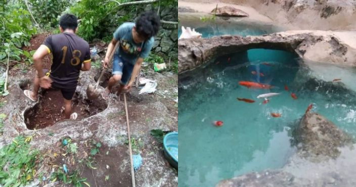 Según relataron algunos medios locales, los jóvenes hicieron una pequeña excavación sobre la tierra blanda hasta que llegaron a la zona donde había varias formaciones rocosas, las cuales limpiaron perfectamente, luego bordearon la zona con piedras y lo llenaron con agua cristalina.