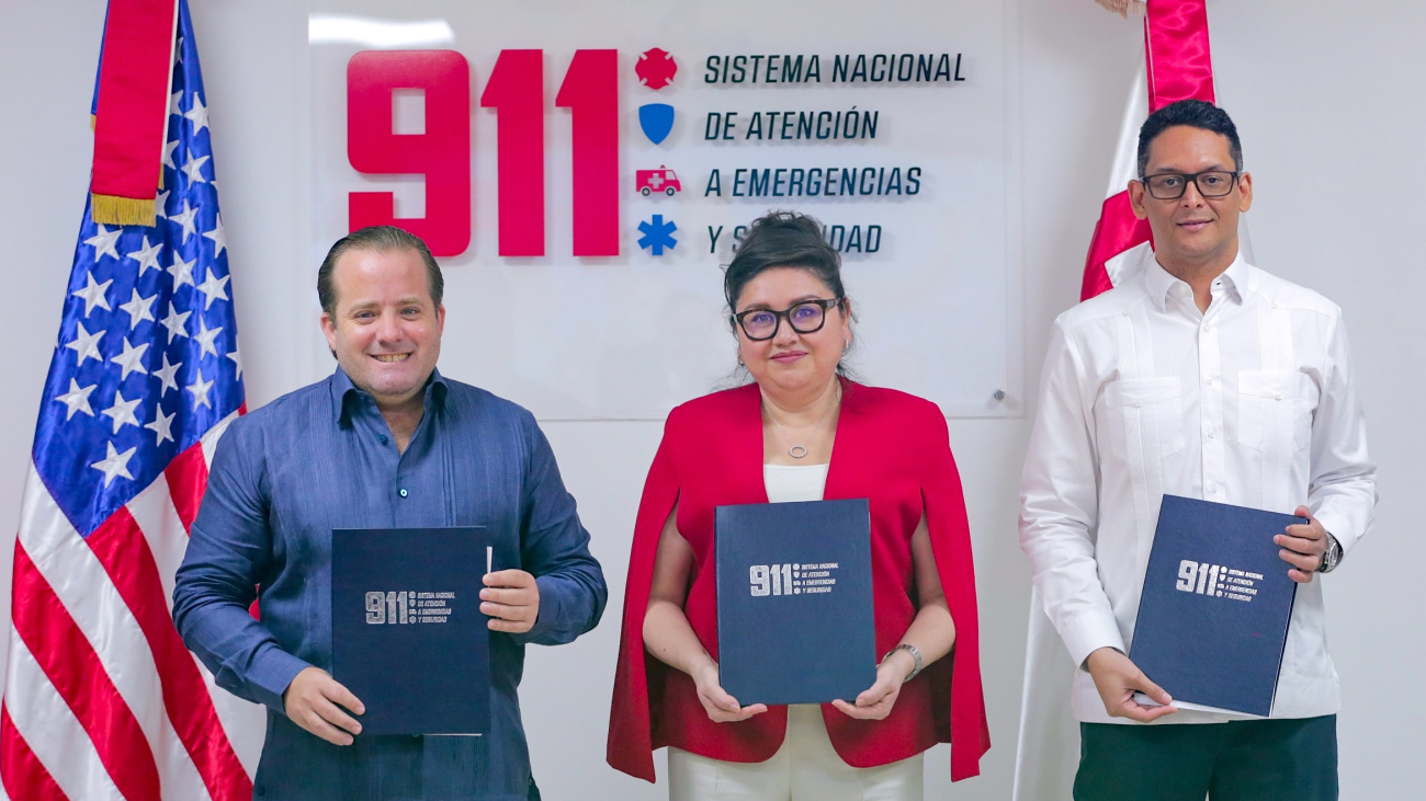 El acto de firma estuvo encabezado por el ministro de la Presidencia y presidente del Consejo del Sistema 911, José Ignacio Paliza; la encargada de Negocios de la Embajada de los EE. UU., Patricia Aguilera; y el director ejecutivo del 911, coronel piloto, Randolfo Rijo Gómez, ERD.