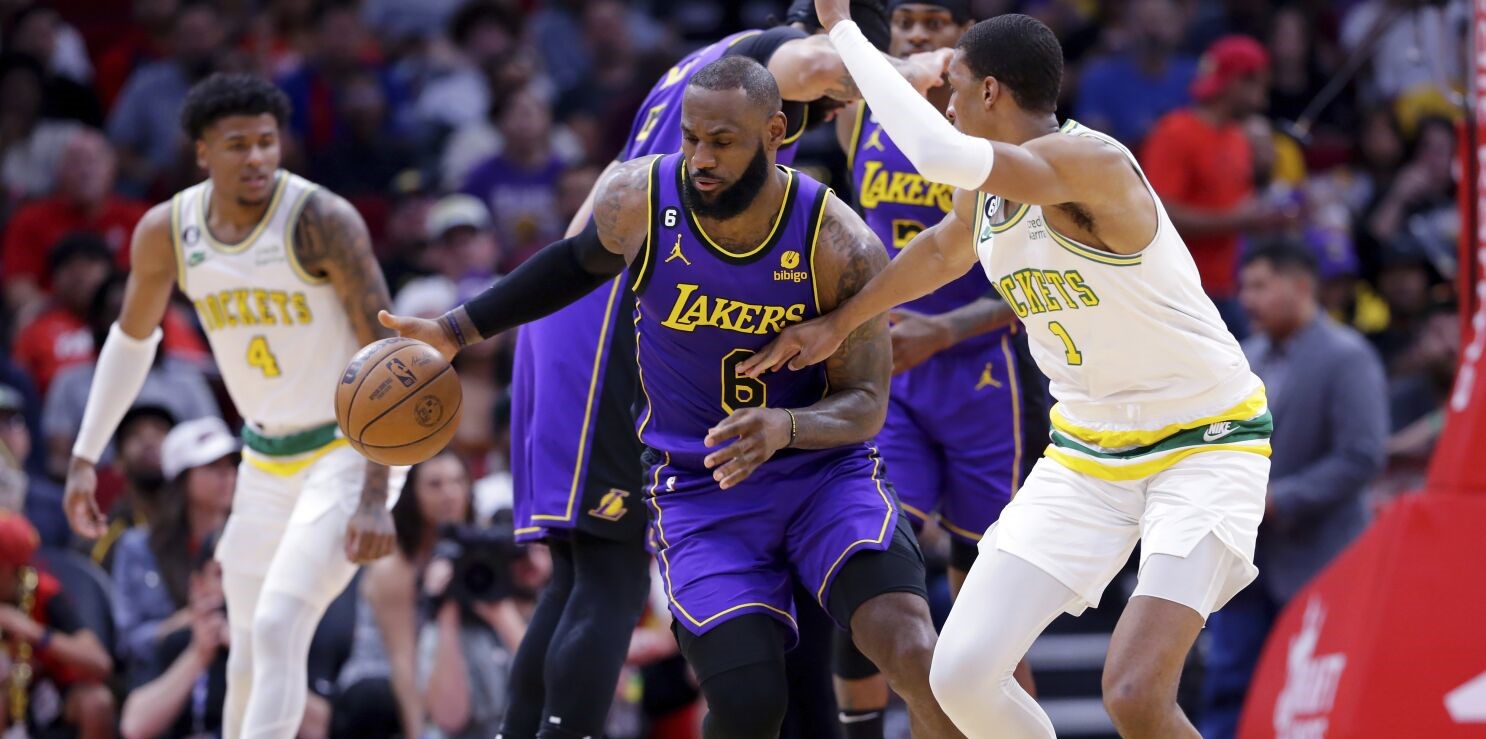 Los Lakers arrollaron 134-109 a los Houston Rockets, colistas, para colocarse octavos en el Oeste y van haciendo el pleno de entusiasmo a una semana del cierre de la temporada regular.