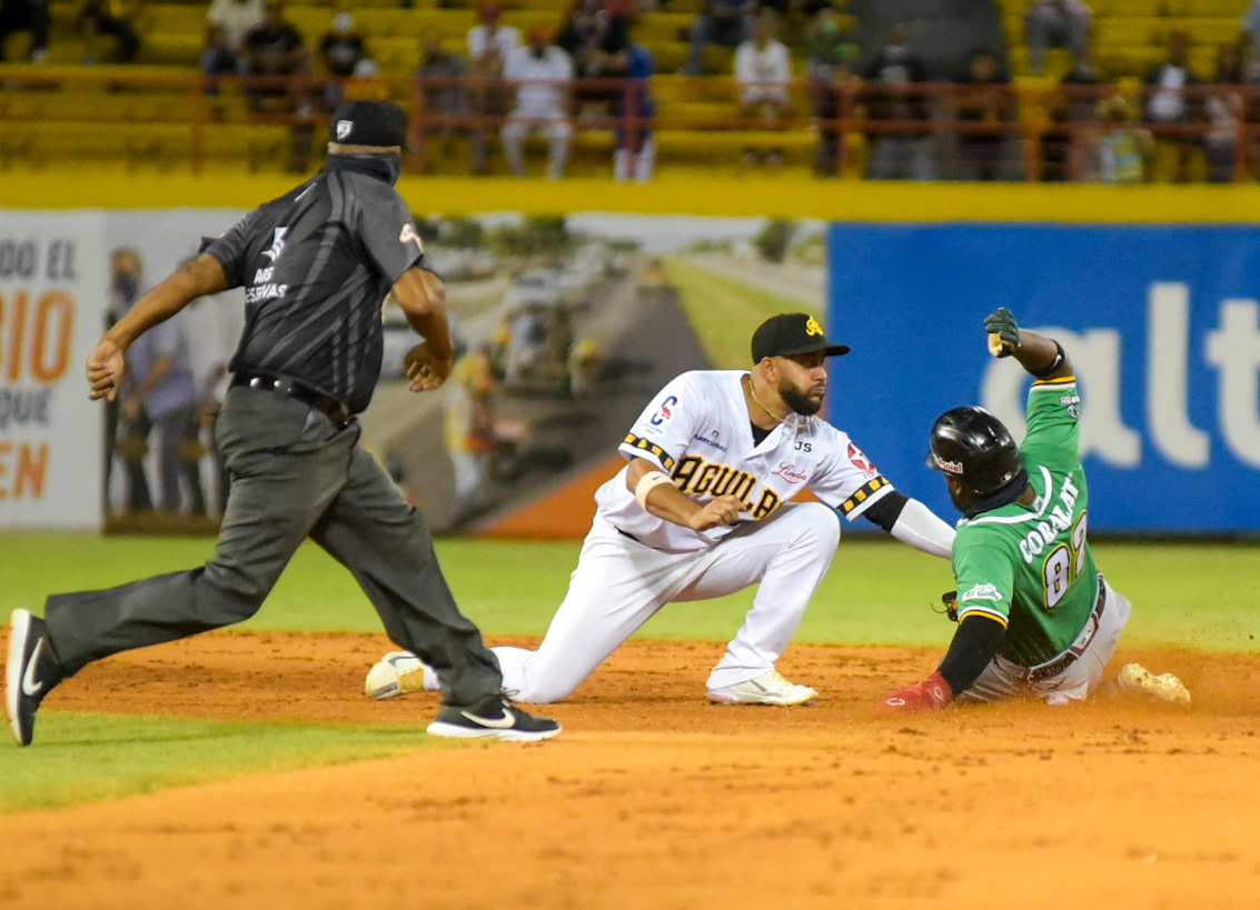 En el cierre de esa entrada, las Águilas marcaron su primera carrera con doble por el jardín izquierdo de Orlando Calixte. En el octavo, los amarillos lograron su segunda del partido con elevado de sacrificio de Calixte, mientras que en el noveno lograron su última carrera con rodado por segunda de Ramón Torres.