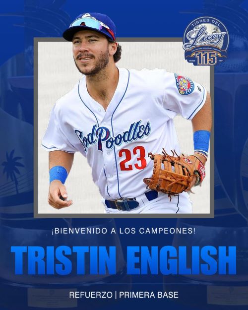 SANTO DOMINGO, RD.- Los Campeones Nacionales y del Caribe, Tigres del Licey anunciaron la contratación del primera base Tristin English, como refuerzo para la temporada 2023-24 de la Liga de Béisbol Profesional de la República Dominicana, que será dedicada a la periodista Onfalia Morillo.