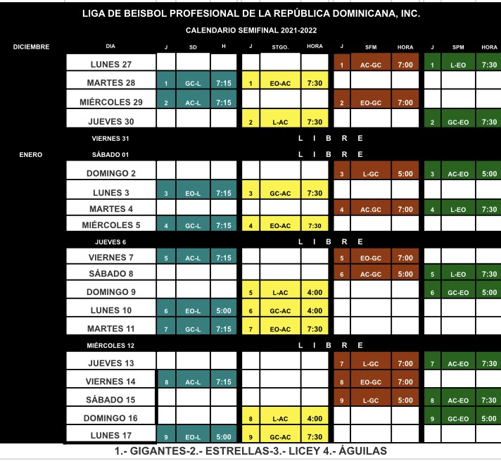 Mediante un parte de prensa, LIDOM informó que el sorteo se llevará a cabo a las 4:00 de la tarde por la plataforma de Zoom y será transmitido por el canal de YouTube de la liga.