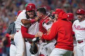 Sus compañeros permanecieron cerca de la cueva y continuaron dándole abrazos y palmadas. No se veía una escena así en el Citizens Bank Park desde octubre, cuando los Filis disputaron la Serie Mundial.