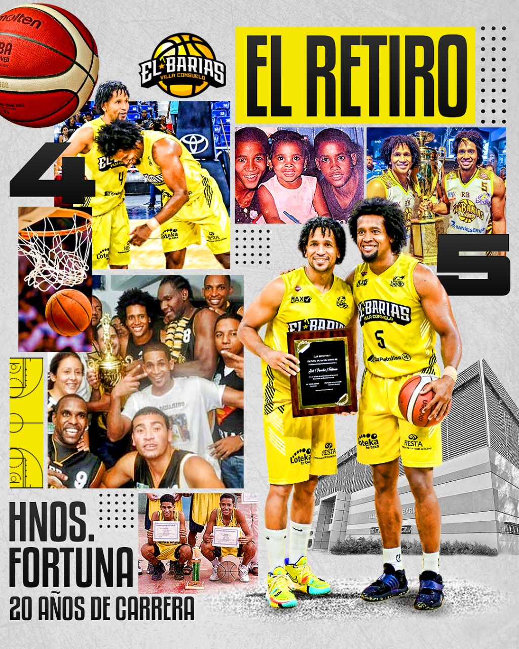 Santo Domingo, RD.- Los hijos de Villa Consuelo, José Guillermo Fortuna Lara (Pancho) y Manuel Elpidio Fortuna Lara (Mañén) se retiran de las canchas con una carrera histórica en el baloncesto del país.