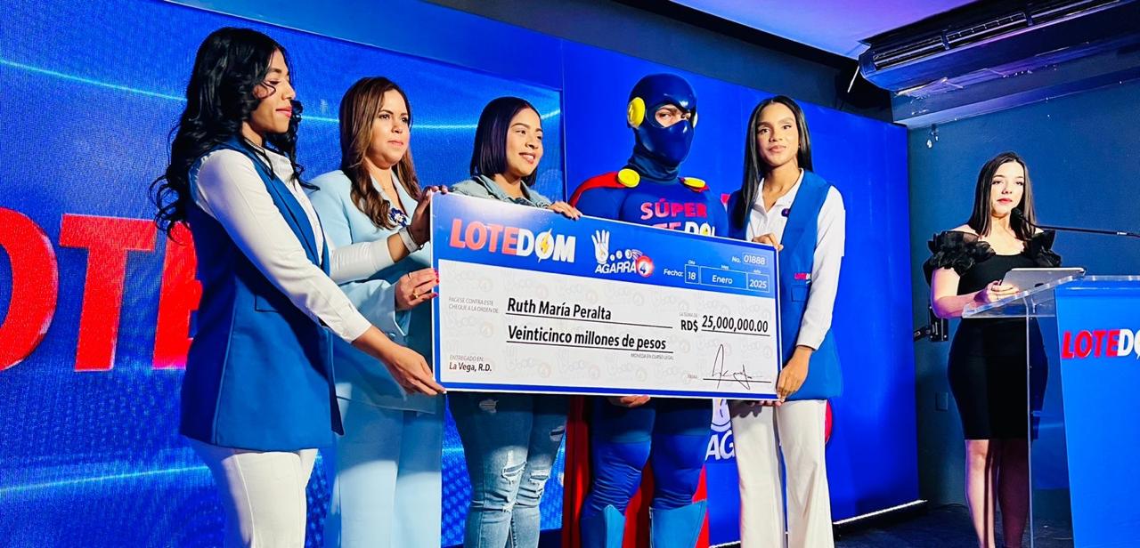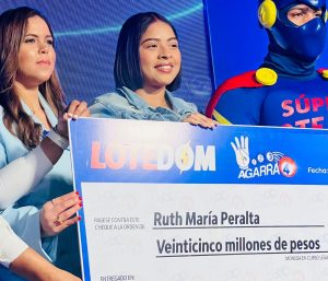 La Vega, RD.- República Dominicana. Durante una emotiva ceremonia realizada en Lite Lounge Restaurant, la empresa Lotedom entregó un cheque simbólico de 25 millones de pesos a la señora Ruth María Peralta, una joven madre soltera oriunda de Burende, quien se gana la vida como manicurista. Este premio histórico fue el resultado de acertar los cuatro números ganadores del popular juego Agarra 4.