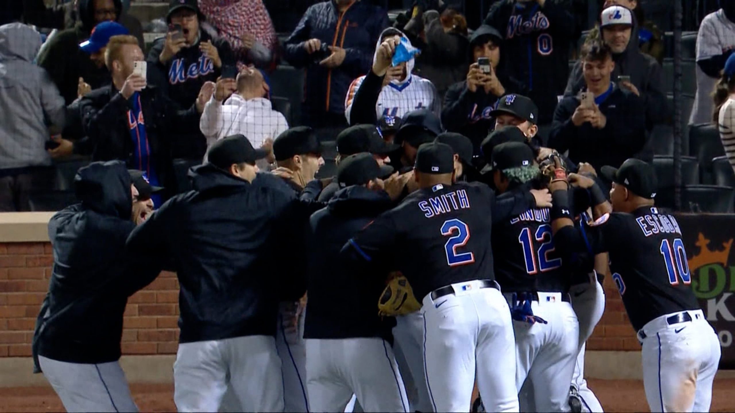 Los Mets ingresaron en el terreno y festejaron con Díaz después de que logró el out final. En la pantalla del estadio apareció la imagen de los cinco lanzadores que consiguieron la proeza.