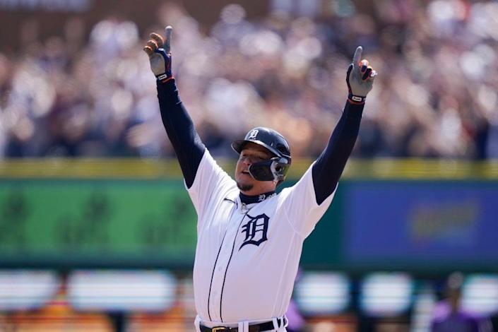 Cabrera levantó inmediatamente su brazo derecho mientras se dirigía a la primera base. El público del Comerica Park lo ovacionó y se dispararon fuegos artificiales en el marcador.