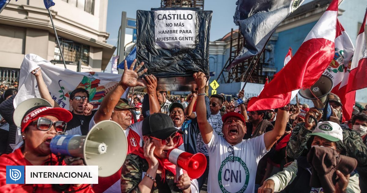 Mas temprano, el mandatario Castillo, sin mencionar la protesta, llamó «reaccionarios» y «enemigos del pueblo» a los que se oponen a su gobierno y en alusión al Congreso refirió que con «calumnias inimaginables» quiere sacarlo del poder. «Me tendrán hasta el último día de mi mandato» el 2026, dijo.