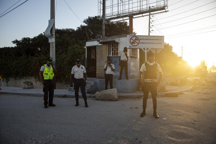 La policía haitiana en las proximidades del Aeropuerto Internacional de Puerto Príncipe, Haití, durante las manifestaciones contra la escasez de combustible y la inseguridad generalizada.