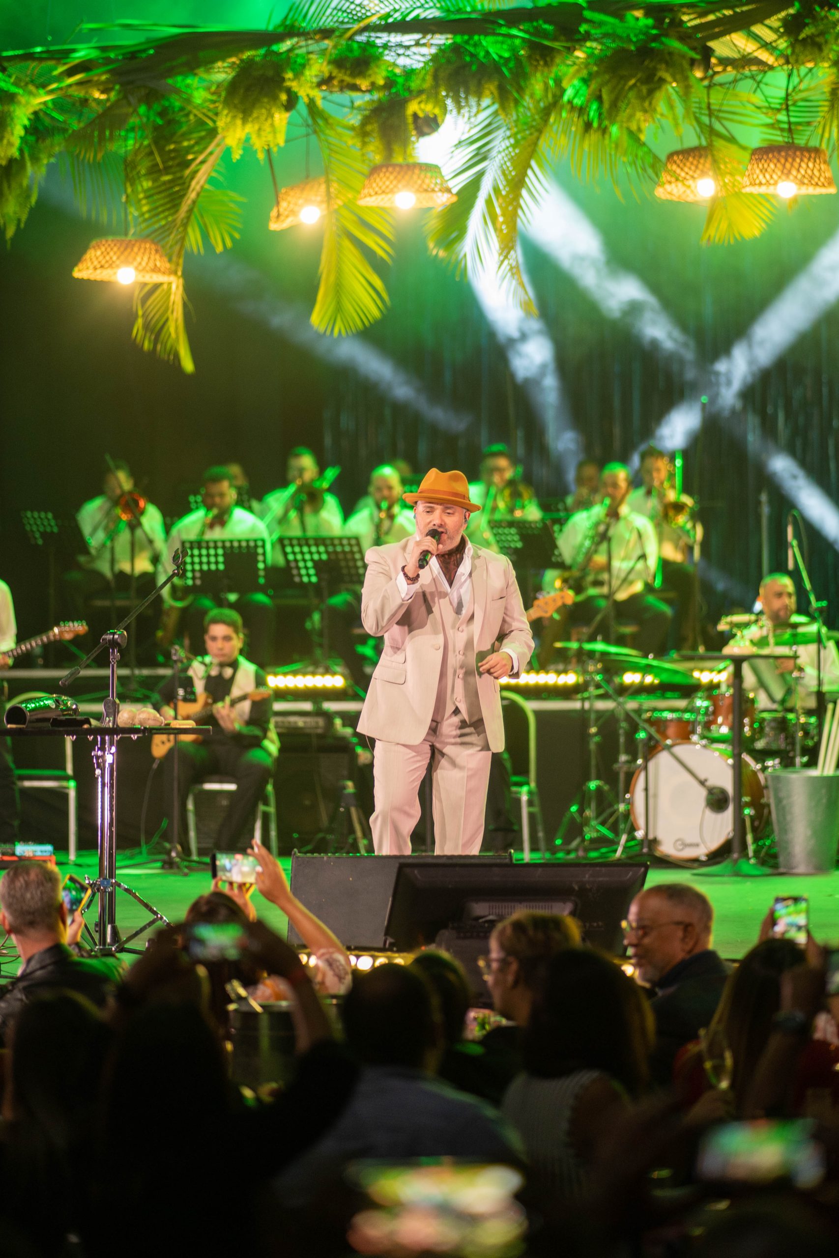 Con más de 30 músicos en escena, el artista llegó a ritmo de “Lo que te gusta”, un homenaje a Johnny Ventura, y de inmediato saludó al público que lo acompañaría durante el espectáculo “Pavel Núñez y su gran banda tropical”.