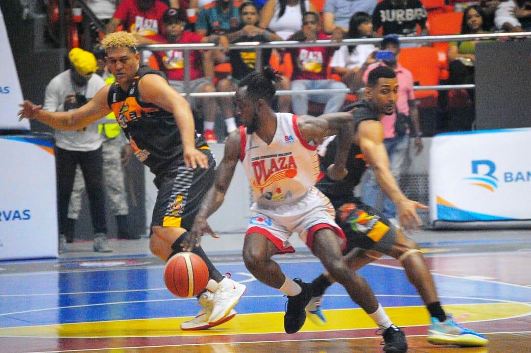 El primer cuarto finalizó 28-20 dominado por el Plaza quien dominó el juego desde el perímetro, incluyendo cinco lances detrás del arco. Al descanso del medio tiempo la Plaza también se fue con el marcador a su favor 47-36 siendo mejores en la distribución del balón, tiros del perímetro y en los contraataques, teniendo como líder ofensivo a Devin Brooks con 16 puntos con 4 asistencias y 3 rebotes, 11 tantos para Oliver García con 4 rebotes y 3 asistencias y Anyeuri Castillo 10 encestes.