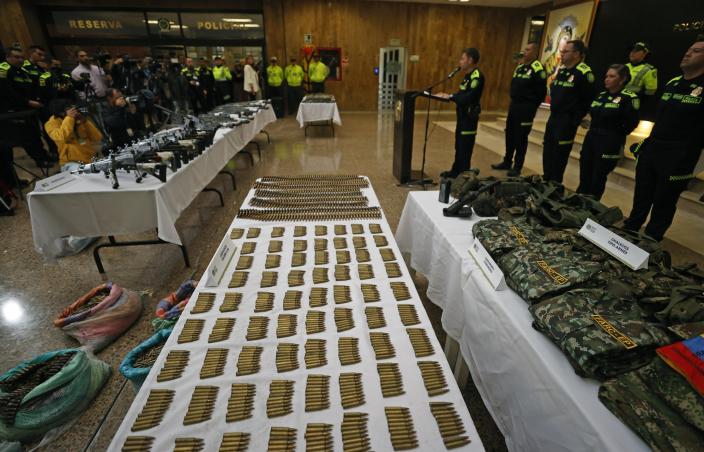 El director de la Policía, general Henry Sanabria, detalló en una conferencia de prensa que fueron incautados 33 fusiles, una ametralladora M-60 calibre 7.62mm, 185 proveedores, tres pistolas, siete armas conocidas como «tatucos», un cordón detonante, dos granadas y más de 30.000 cartuchos de munición, así como dos teléfonos satelitales, entre otros elementos.