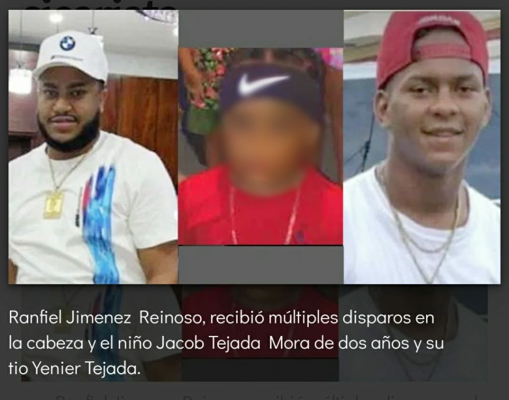 El reporte preliminar indica que el prófugo se desmontó de una motocicleta junto a otro sujeto aún no identificado, y sin mediar palabras, disparó contra los presentes en el citado establecimiento, ocasionándole la muerte a Yonathan Rangiel Jiménez, de 25 años; Yenier Antonio Tejada Dickson, de 22, y el niño, sobrino de Dickson.