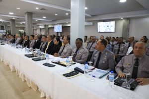 La sesión de trabajo se realiza en el Salón del Club de Oficiales del Palacio de la Policía Nacional. En ella, se evalúan las tareas cumplidas hasta la fecha, los resultados alcanzados y las nuevas disposiciones que serán adoptadas para continuar elevando los niveles de seguridad en beneficio de los dominicanos.