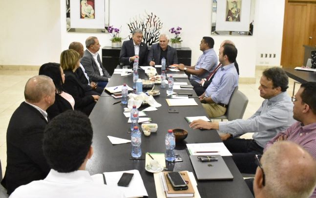 Durante su visita conversaron sobre diversos temas con el presidente del Comité de los Juegos Santo Domingo 2026 (COSADO26), José P. Monegro, así como con los demás integrantes de ese organismo, reunidos en sesión de trabajo.