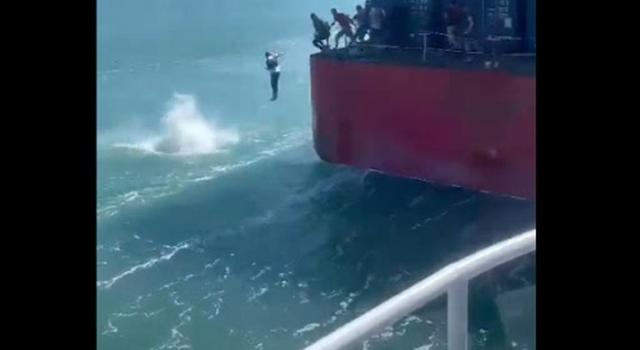 En un video divulgado por medios puertorriqueños se observa a los supuestos polizones saltar uno a uno desde la embarcación Brooklyn Bridge, a excepción de dos mujeres, y que luego fueron rescatados por los guardacostas.