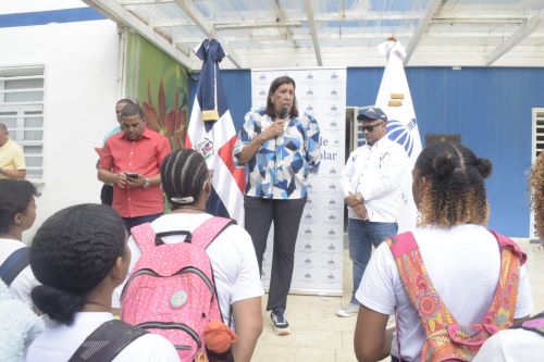 El acto de recibimiento incluyó la interpretación del himno nacional y la invocación religiosa a cargo de la estudiante Sombra de la Cruz y más tarde palabras de agradecimiento por la representante del Colegio, Dominga Duarte.