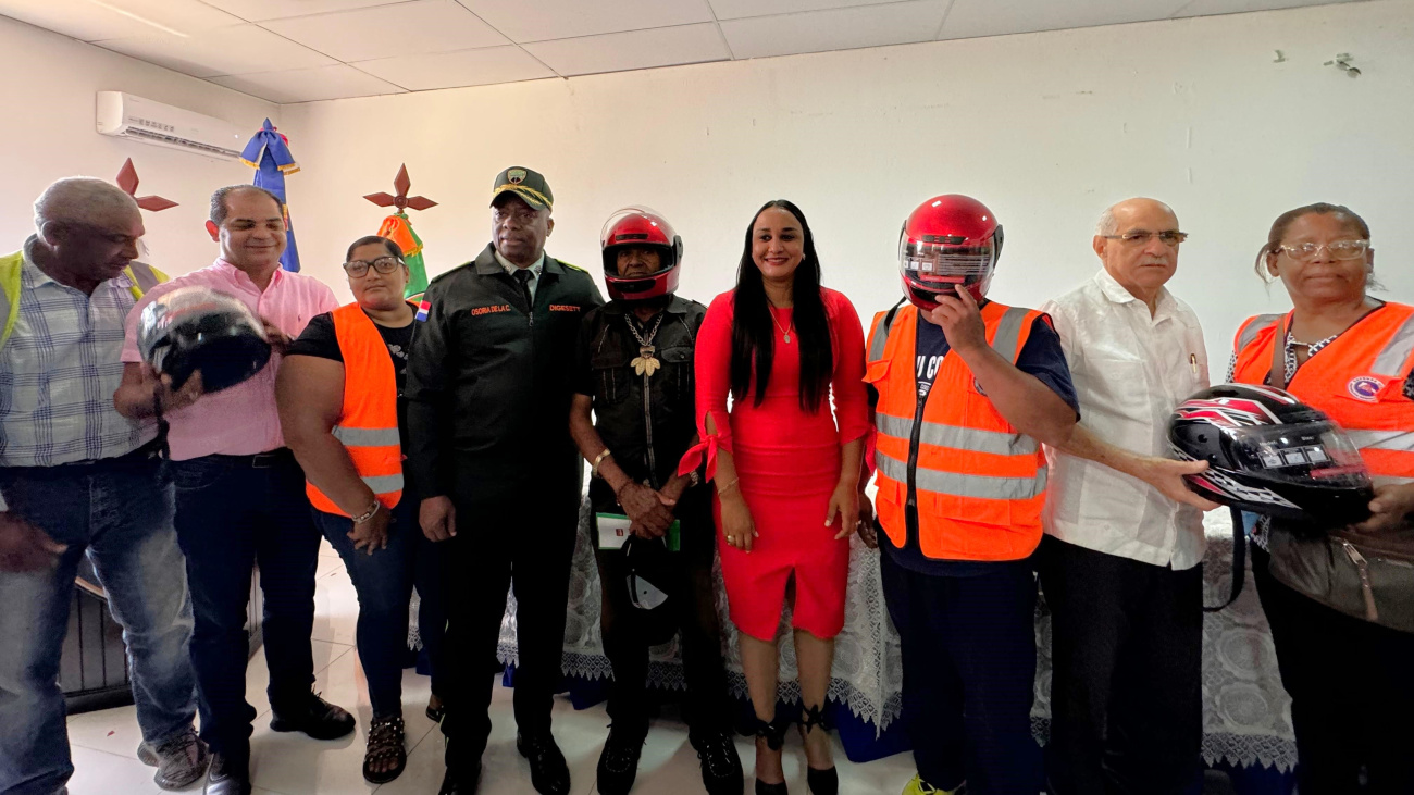 Culminada la charla, el titular de la Digesett, junto con la gobernadora de la provincia Valverde, Daysi Aquino; el director regional noroeste de la Policía Nacional, general Sebastián Guzmán Toribio, entregó cascos protectores y raciones alimenticias a los motociclistas que se dieron cita en el salón de la Gobernación de ese municipio de Mao.