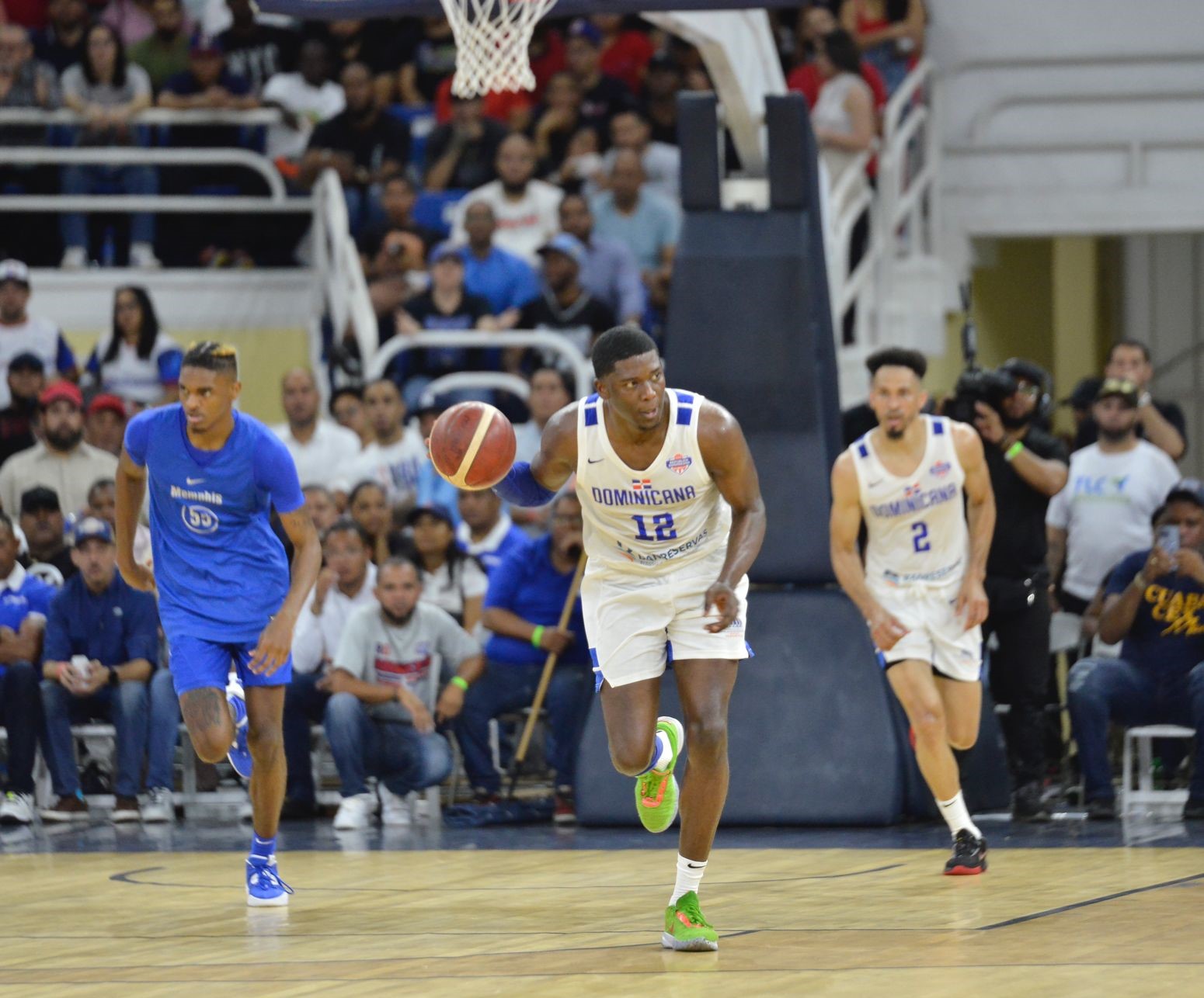 Una línea ofensiva dominicana encabezada por el NBA Lester Quiñones, de los Warriors de Golden State, puso a gozar a toda capacidad al público local en su primera carta de presentación en la selección mayor en suelo patrio, para el joven de ascendencia dominicana.