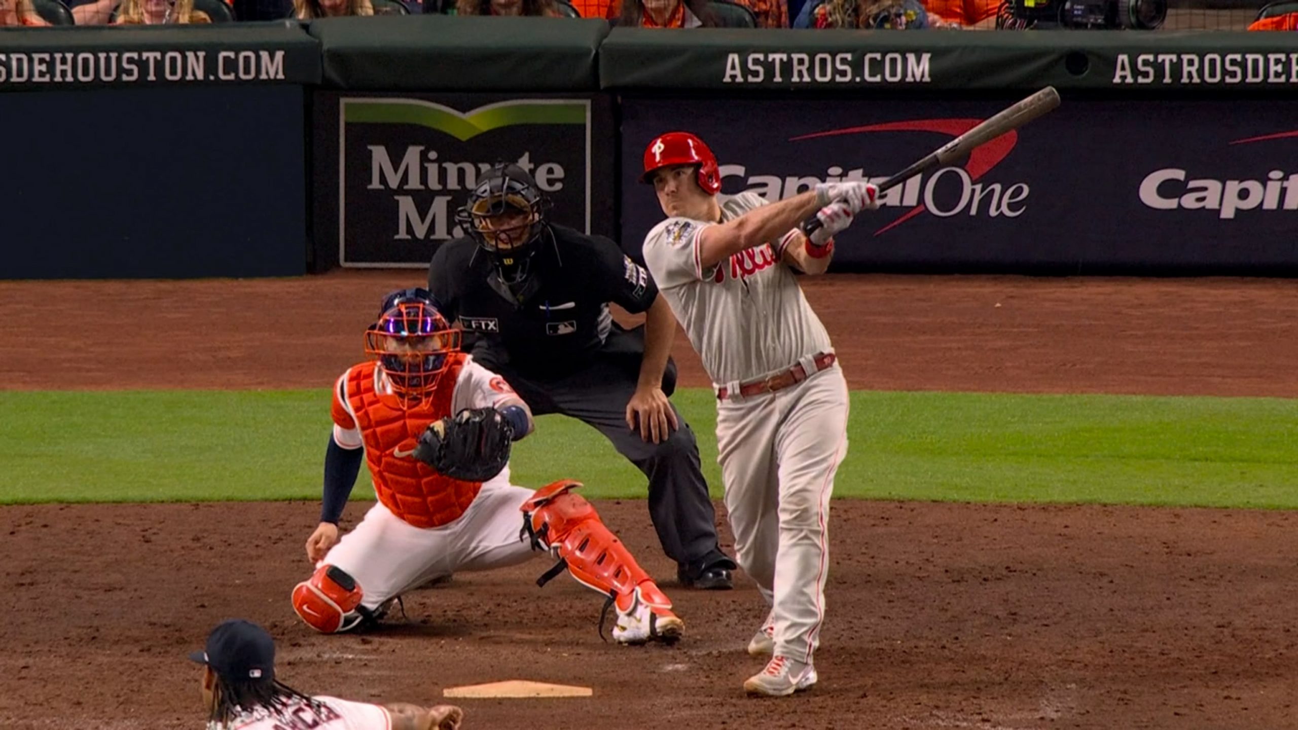 Los Filis se recuperaron de un déficit de cinco anotaciones en el encuentro y propinaron a Houston su primera derrota en esta postemporada, nada menos que en su feudo. Fueron salvados además por el jardinero derecho Castellanos, quien se deslizó para hacer una gran atrapada.