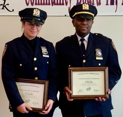 New York, EE.UU.- La Junta comunal # 12 de Washington Heights y la organización de Oficiales Dominicanos de la Policía de Nueva York (NYDO) reconocieron a los oficiales Teniente Brian Query, oficial Jasmine Nunez Ramos ambos dominicanos y al oficial Imran Alli del precinto 42 ubicado en el Bronx del Departamento de la Policía de New York.
