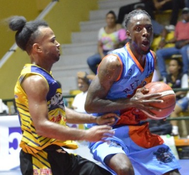 SAN PEDRO DE MACORIS, RD.- Edward Santana se volvió a lucir en la ofensiva en la victoria del club Retiro 23 95-86 sobre Correcaminos de Quisqueya, en el segundo choque de la serie final del XXXIX Torneo de Baloncesto Superior, en el Complejo Deportivo, de aquí.