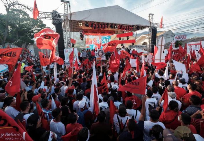 En un recordatorio tácito a la oposición unida que la respalda, la multitud que la arropó también estaba salpicada de banderas blancas y amarillas del partido de su compañero de fórmula, el popular presentador de televisión Salvador Nasralla, segundo en 2017 y que se describe como de centro-derecha.