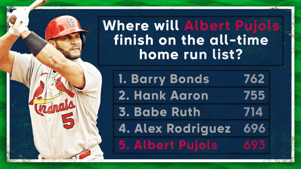 Pujols tiene 693 cuadrangulares, a cuatro de tomar posesión en solitario del puesto cuatro de todos los tiempos y a siete del exclusivo club de los jugadores que han dado 700 vuelacercas.