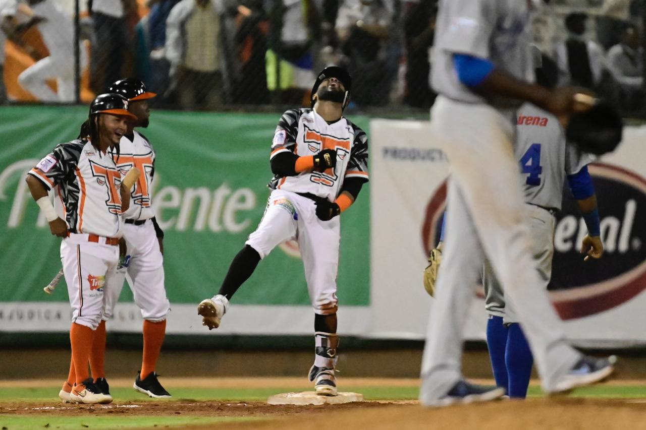 Los Toros descontaron en el cierre del primer episodio, cuando Cristhian Adames disparó sencillo que remolcó a Ruben Sosa desde la intermedia, elevado de Gilberto Celestino y wild pitch del relevista Dany Jiménez y un infield hit de Wendell Rijo que produjo la cuarta.