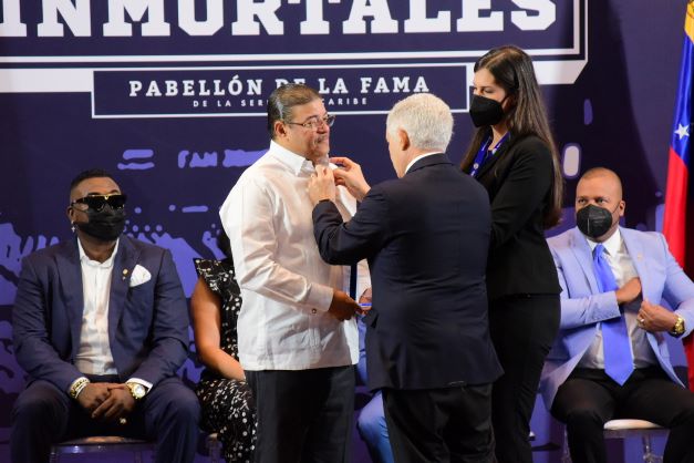 Puello Herrera habló sobre los aportes de Camacho al certamen caribeño durante el acto de exaltación de la Clase Inmortal 2022 de la Serie del Caribe, donde la confederación entregó el Botón de Oro al responsable de dirigir la política deportiva del Gobierno dominicano que encabeza el presidente Luis Abinader.
